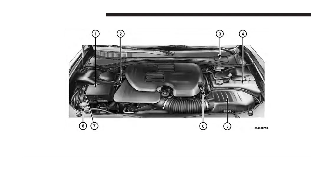 2 — Engine Oil Dipstick 6 — Engine Oil Fill