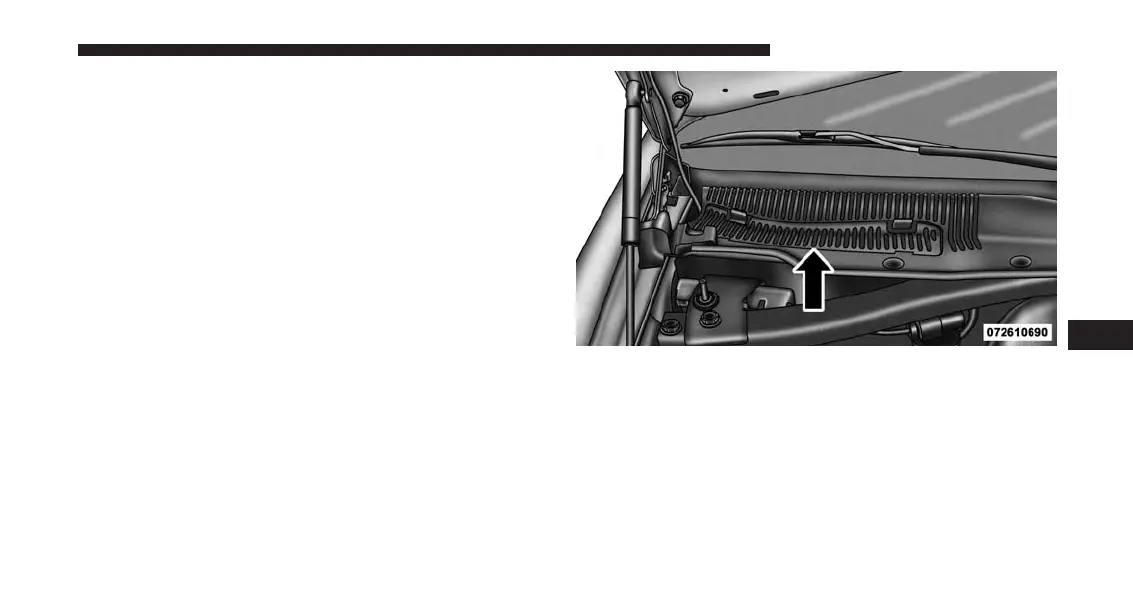 The filter is located in the fresh air inlet under the hood,