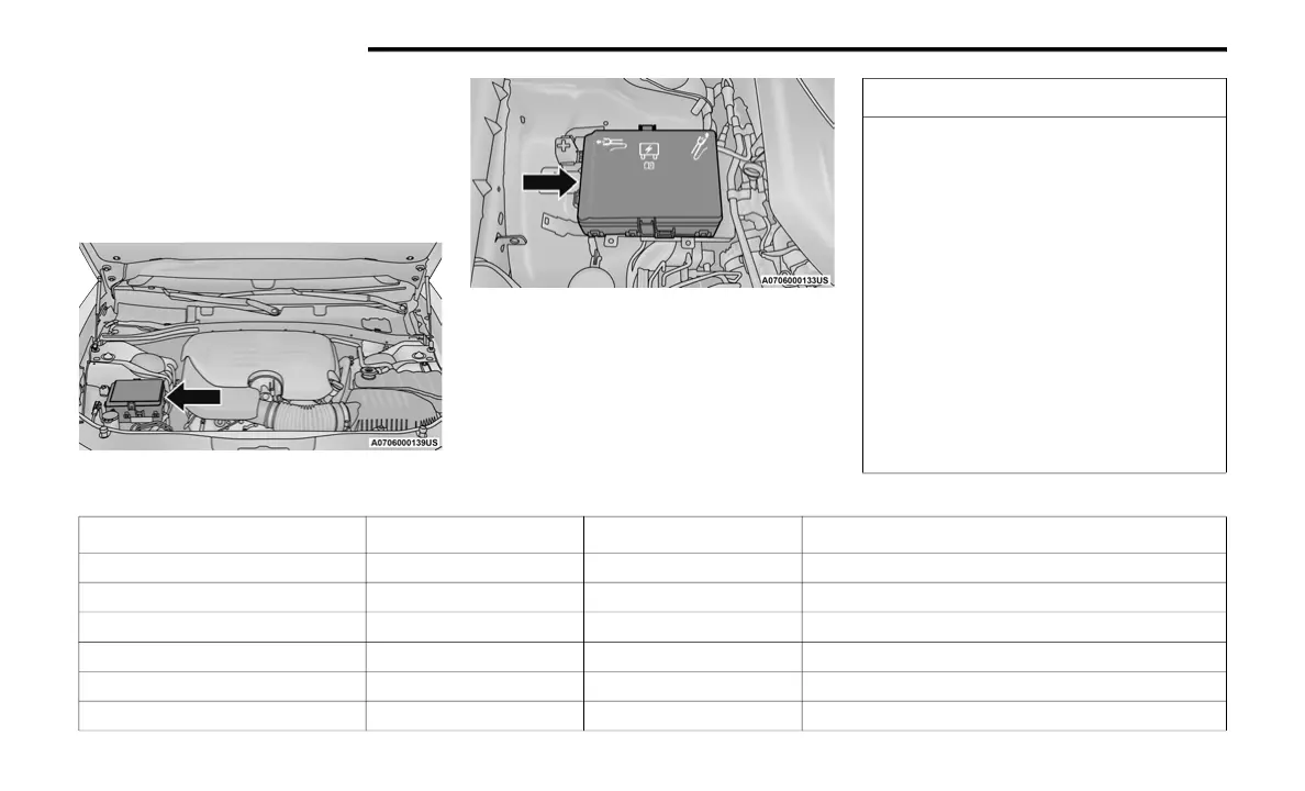contains fuses and relays. Fuse cavity location