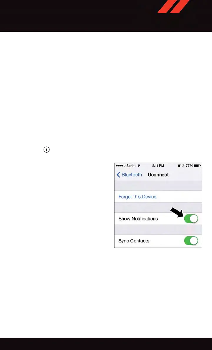 • Ensure Bluetooth is enabled, and the mobile phone is paired to the Uconnect