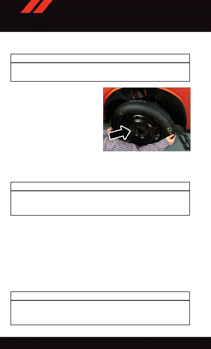 Be sure to mount the spare tire with the valve stem facing outward. The vehicle could