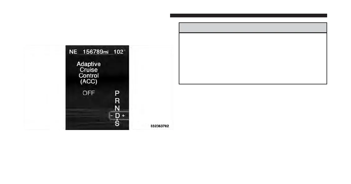 the EVIC will display “Adaptive Cruise Control Off.”