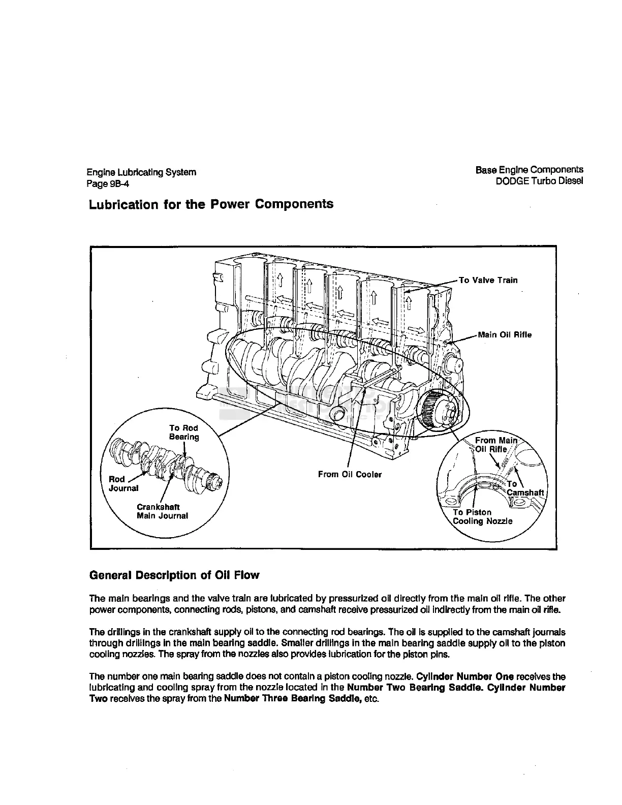 drillings in the main bearing saddle. Smaller drillings in the main bearing saddle supply oil to the piston
