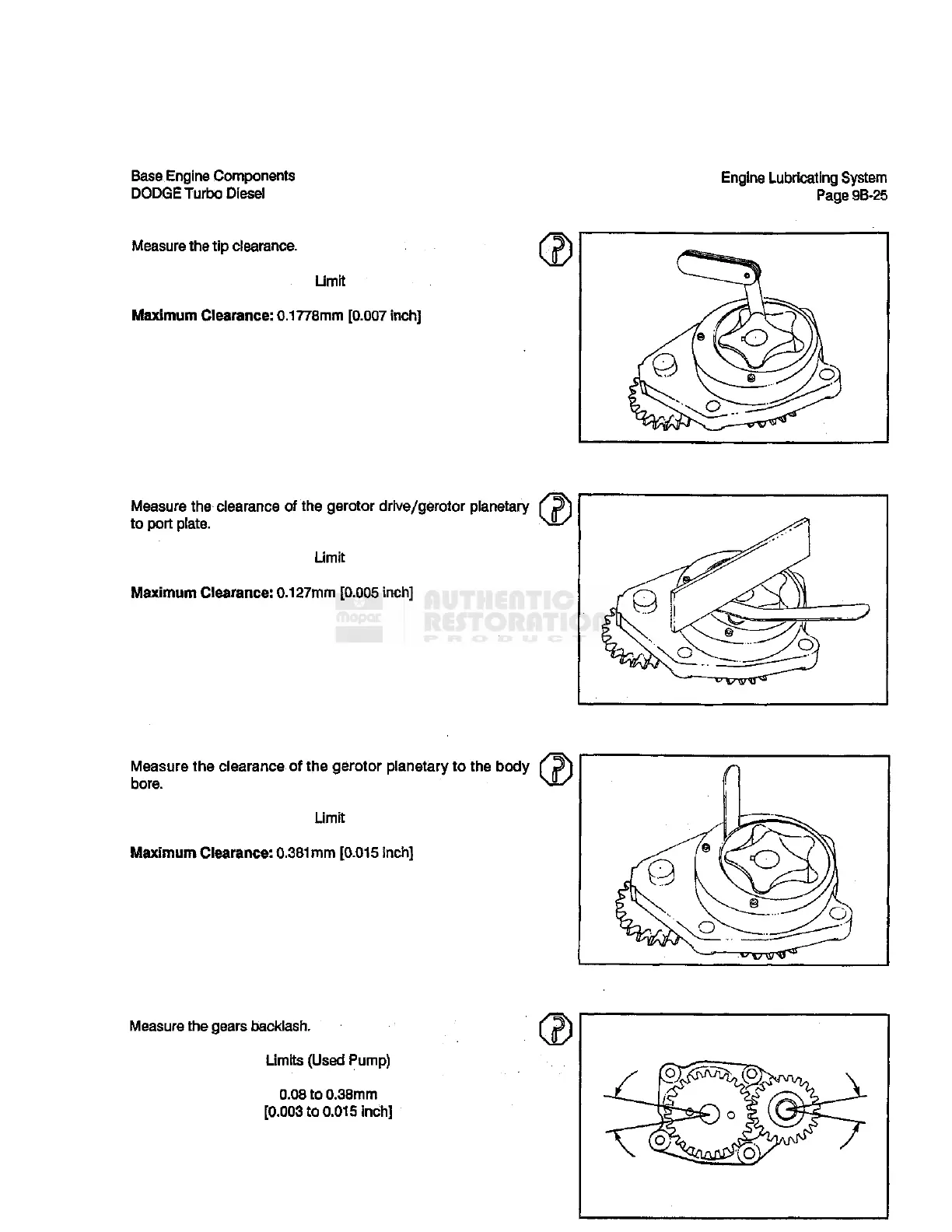 Measure the clearance of the gerotor drive/gerotor planetary \ ~^f\