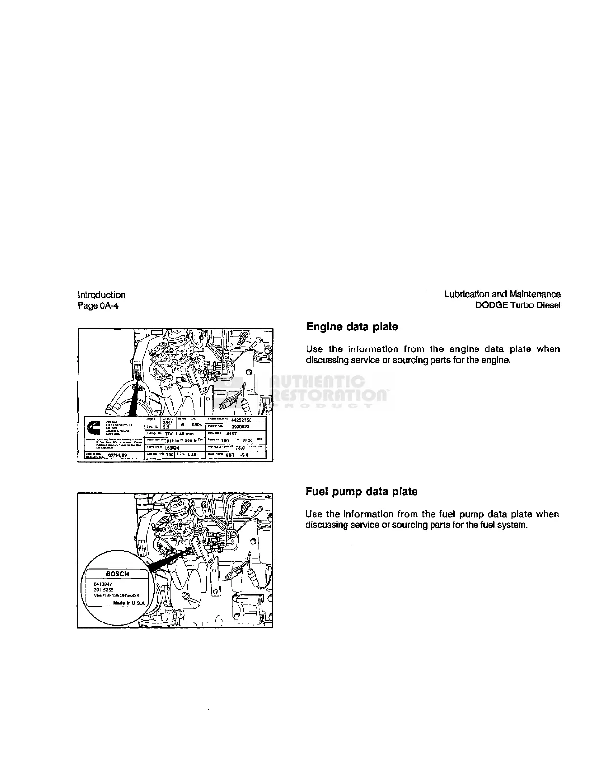 Dodge D250 1990 - Engine Data Plate; Fuel Pump Data Plate
