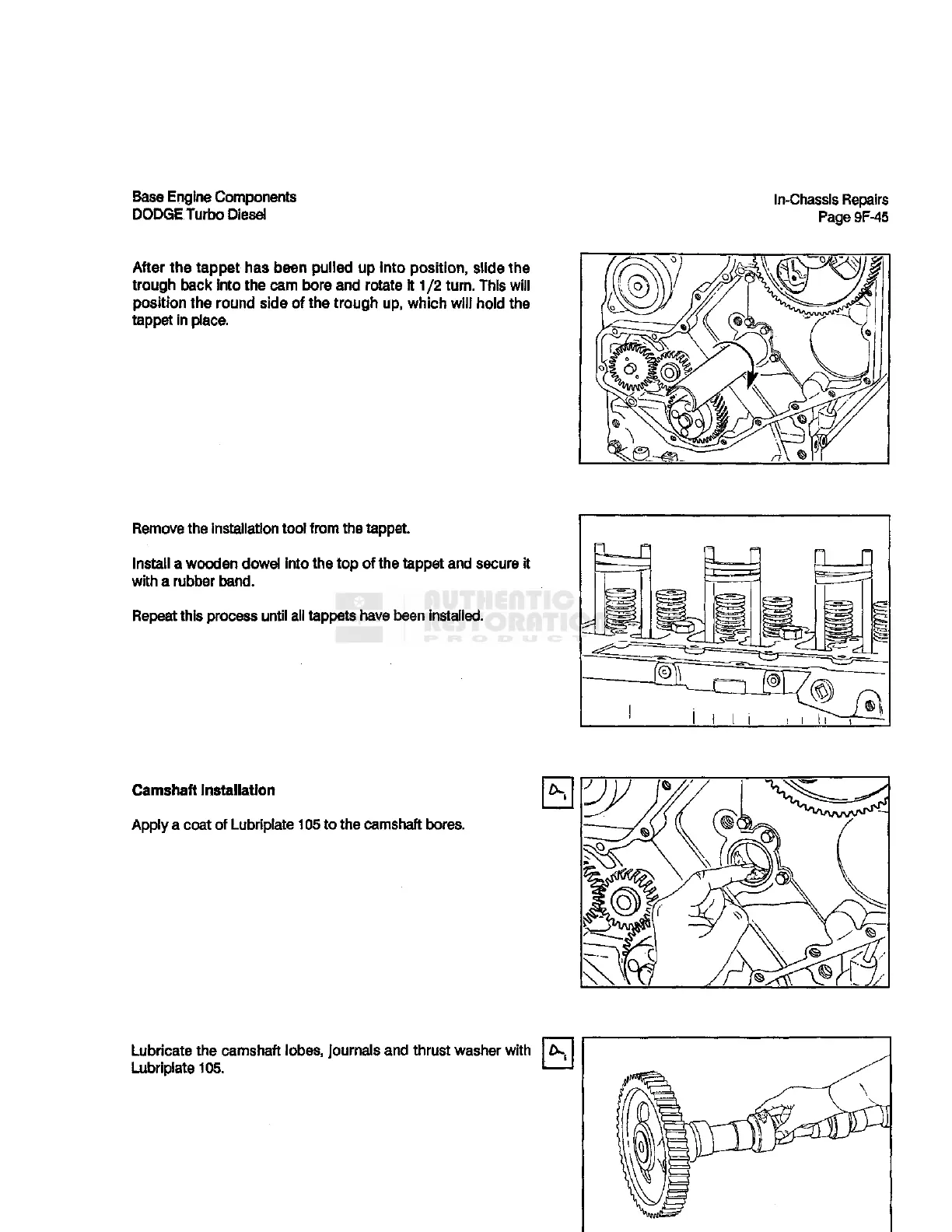 Apply a coat of Lubriplate 105 to the camshaft bores.
