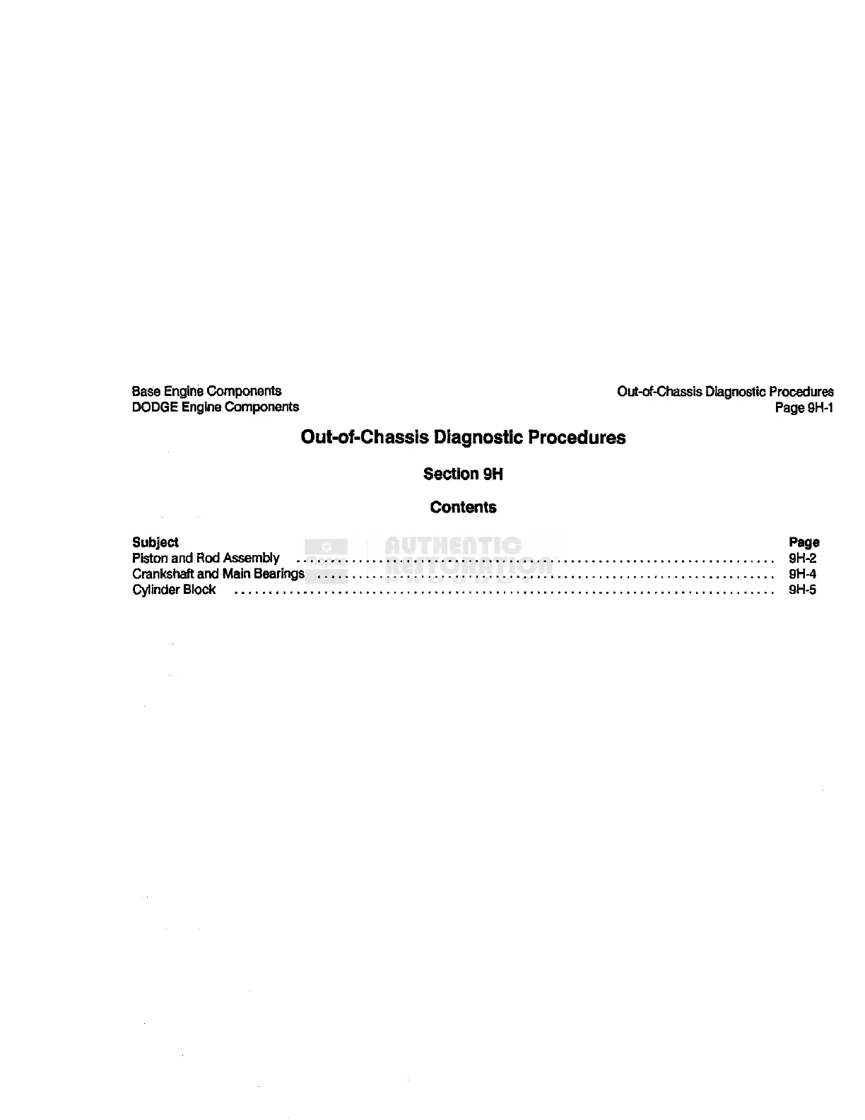 Dodge D250 1990 - Out-Of-Chassis Diagnostic Procedures