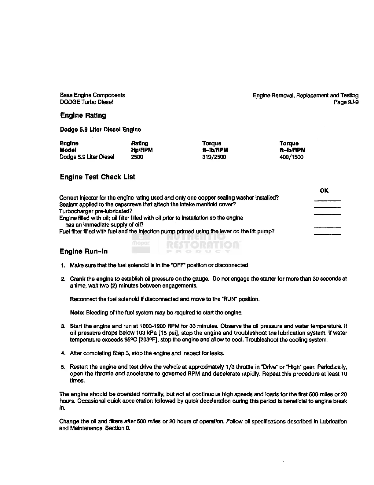 Dodge 5.9 Liter Diesel Engine