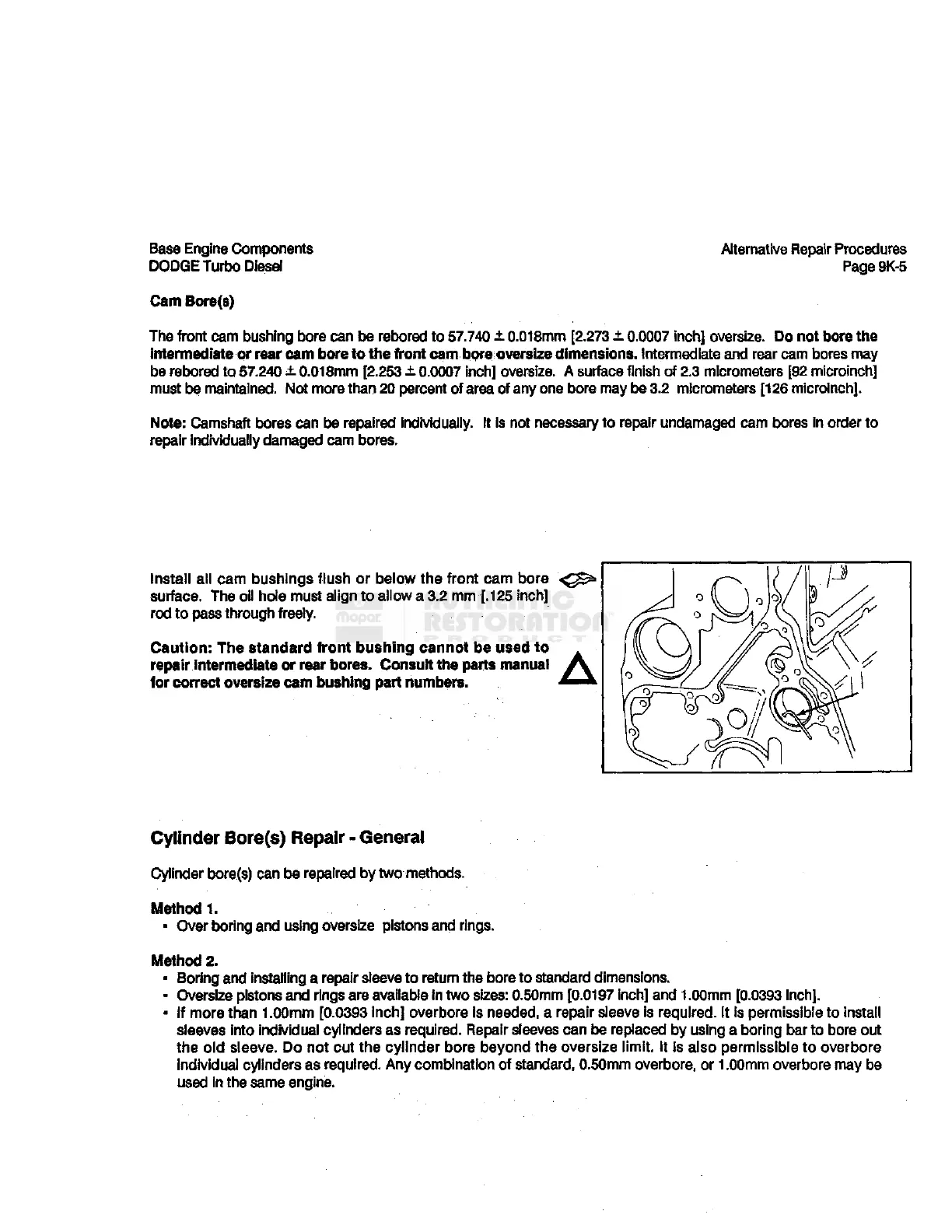 Inch] overbore is needed, a repair sleeve Is required. It is permissible to install