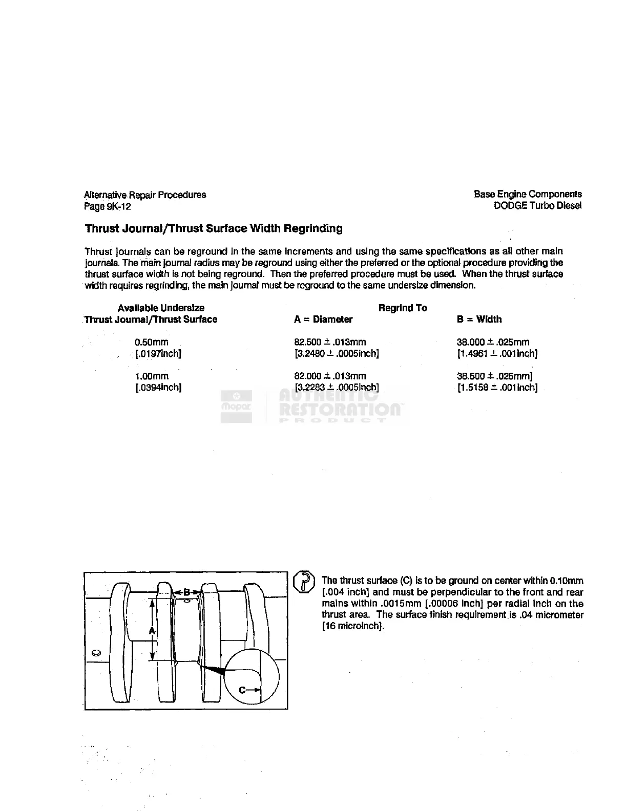 Thrust journals can be reground in the same increments and using the same specifications as all other main