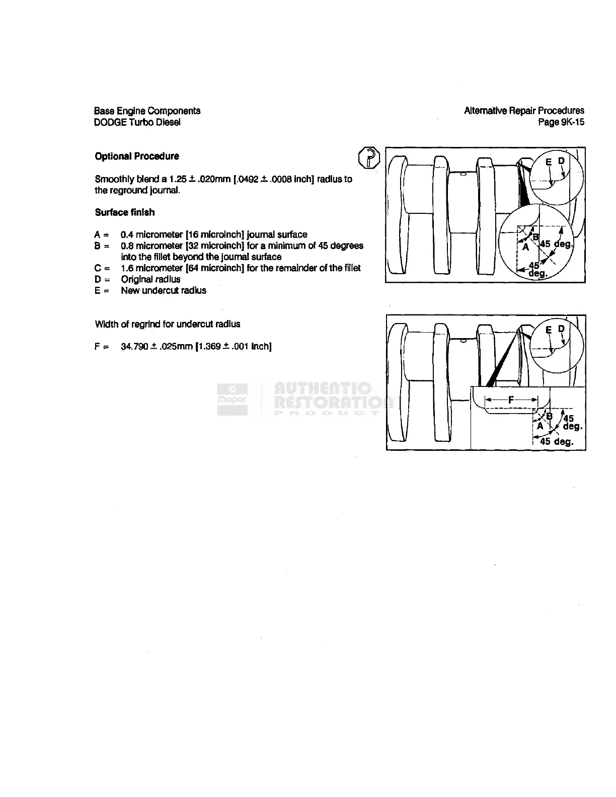 A • 0.4 micrometer [16 microinch] journal surface