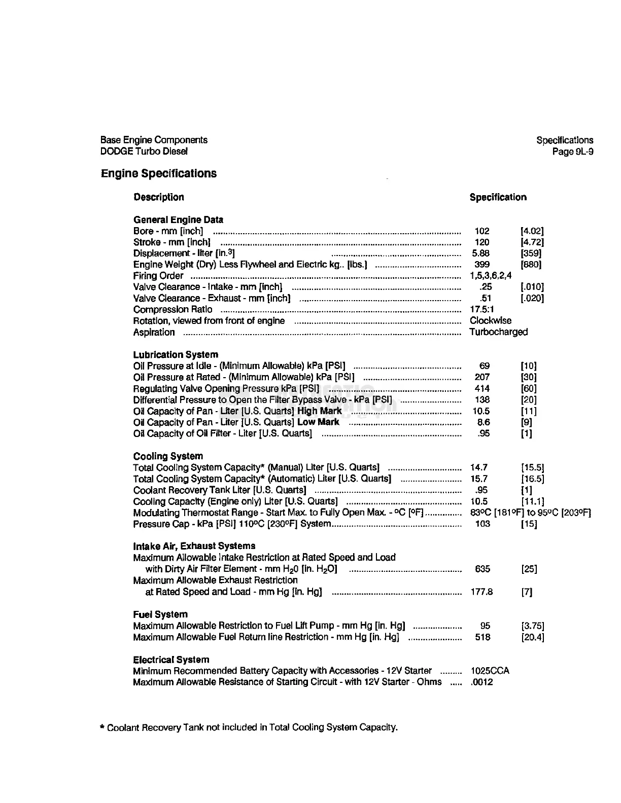 Cooling Capacity (Engine only) Liter [U.S. Quarts] 10.5