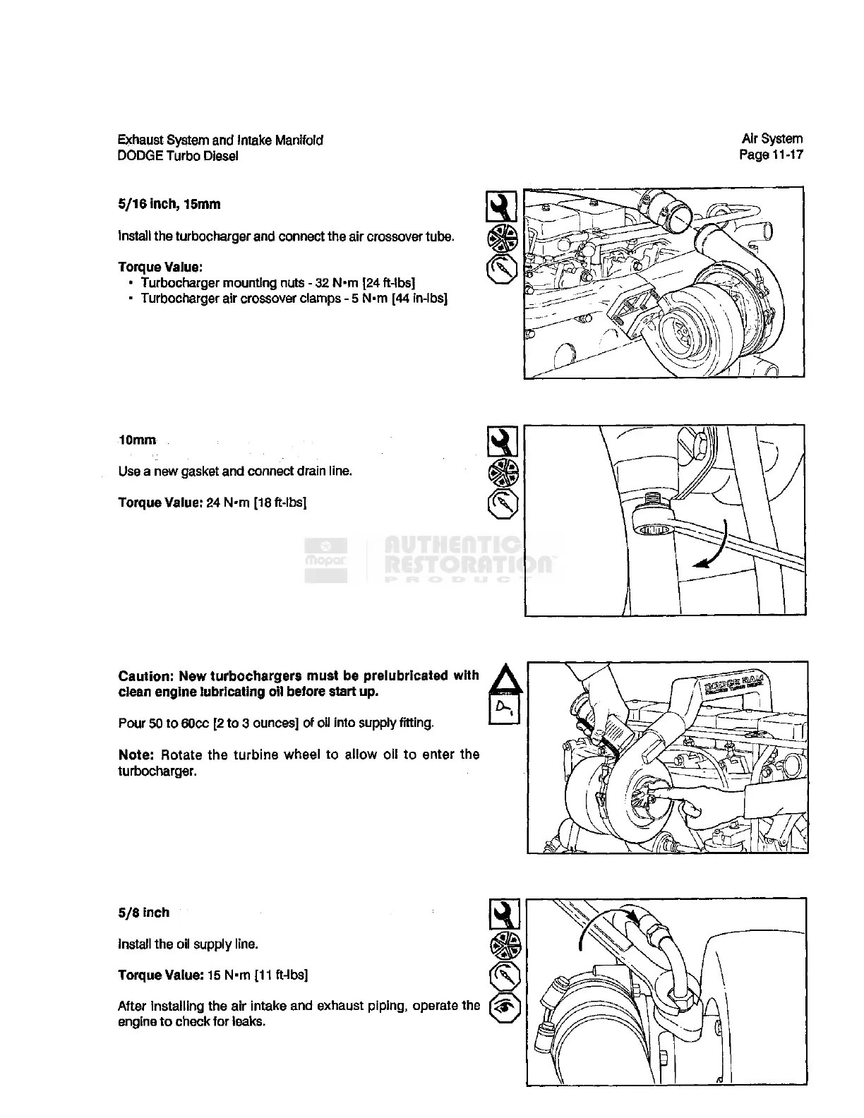 New turbochargers must be prelubricated