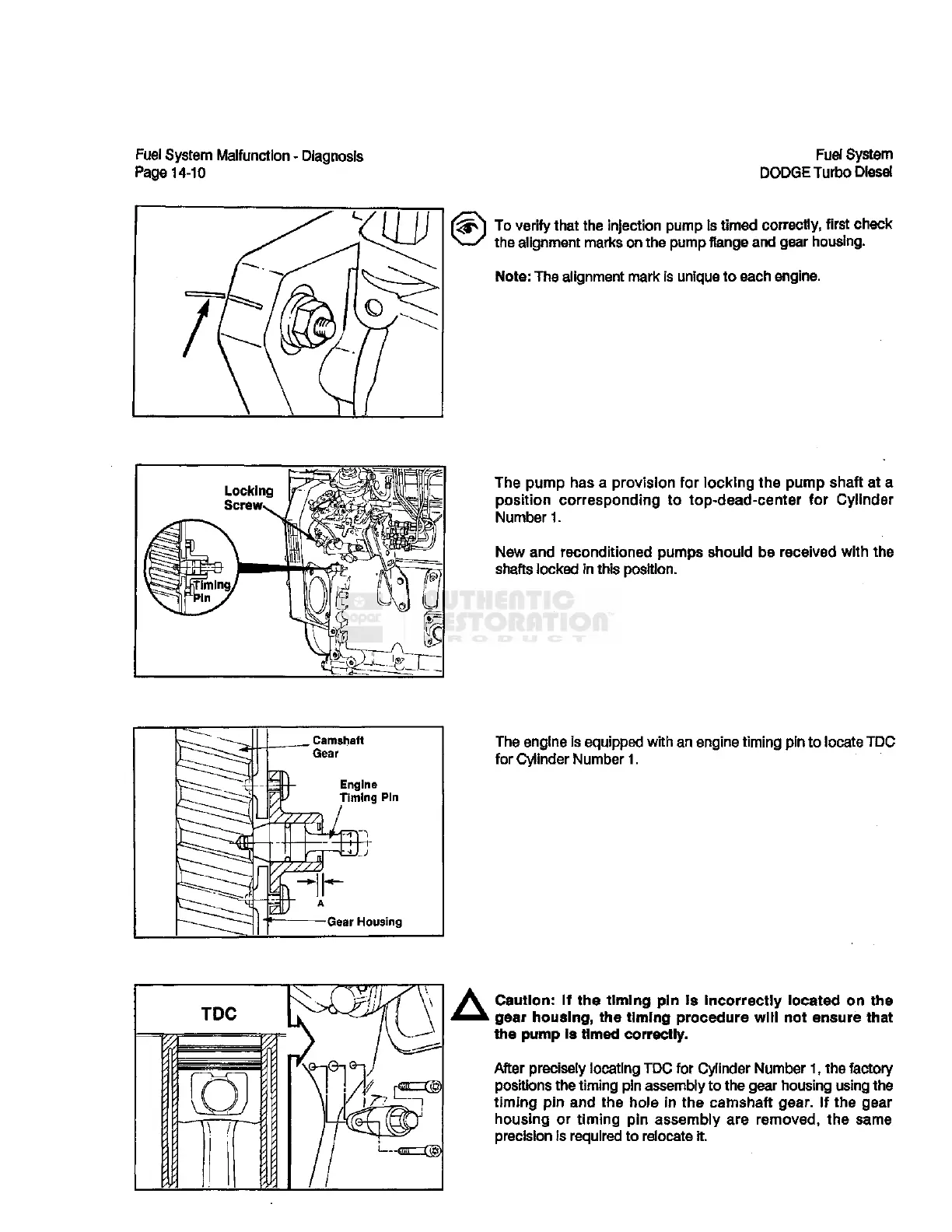 pin and the hole in the camshaft gear, if the gear