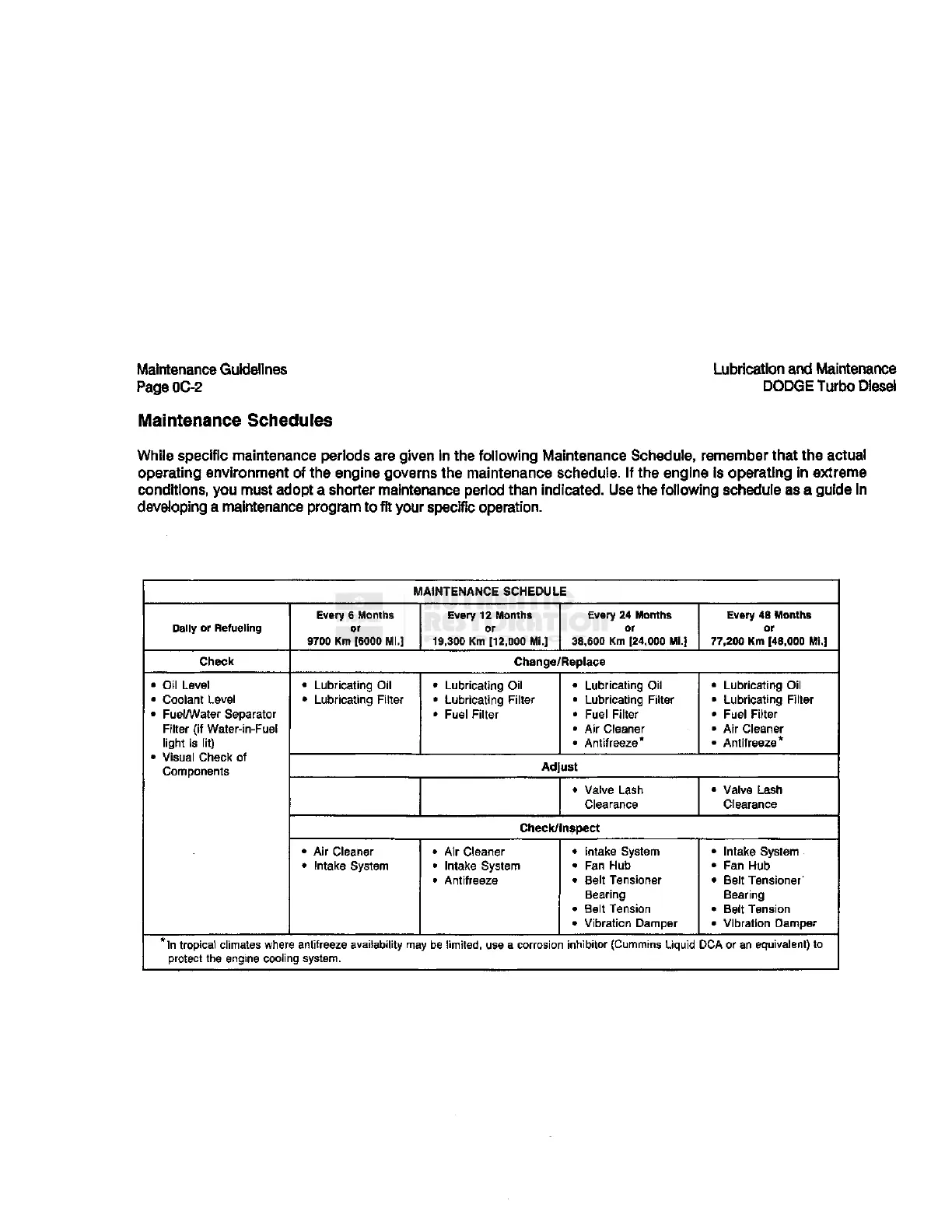 *ln tropical climates where antifreeze availability may be limited, use a corrosion inhibitor (Cummins Liquid DCA or an equivalent) to
