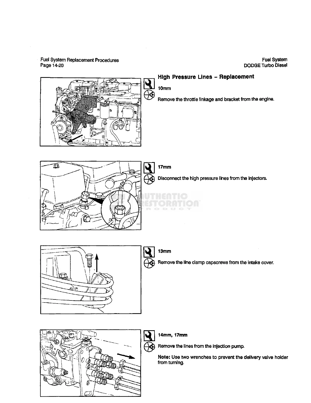 Use two wrenches to prevent the delivery valve holder