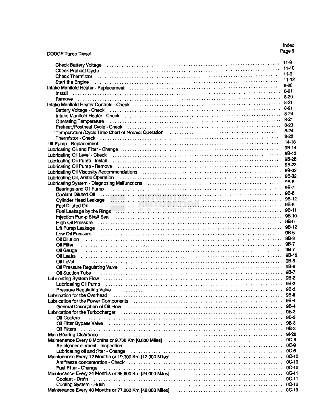 Lubrication for the Overhead . 9B-5