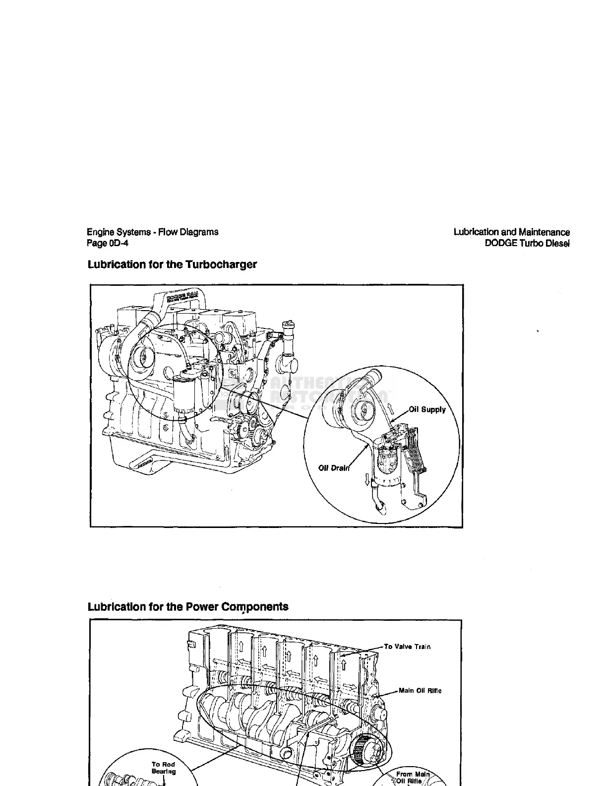 Dodge D250 1990 - Lubrication for the Power Components; Lubrication for the Turbocharger