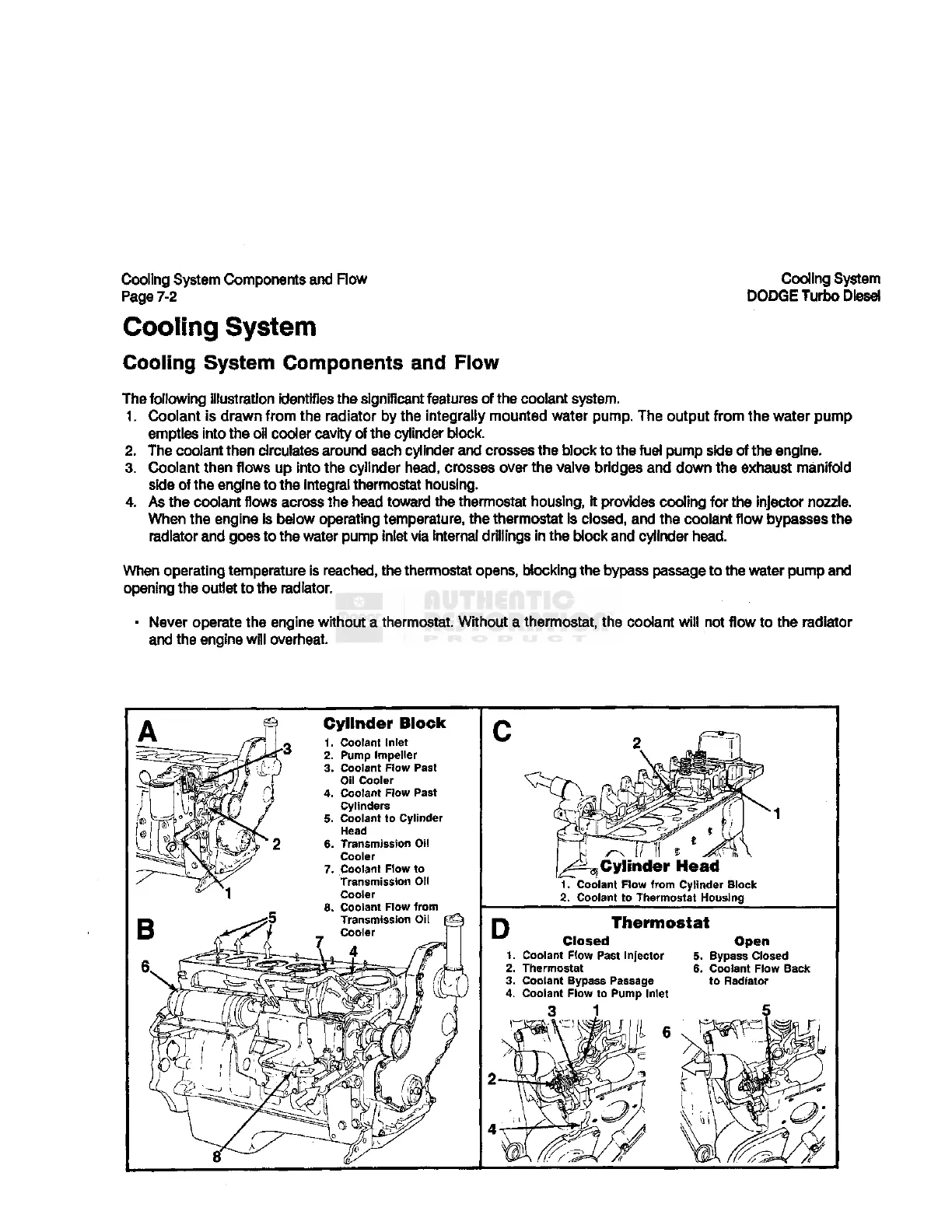 Dodge D250 1990 - Cooling System Components and Flow; Cylinder Block Diagram; Cylinder Head Diagram; Thermostat Diagram