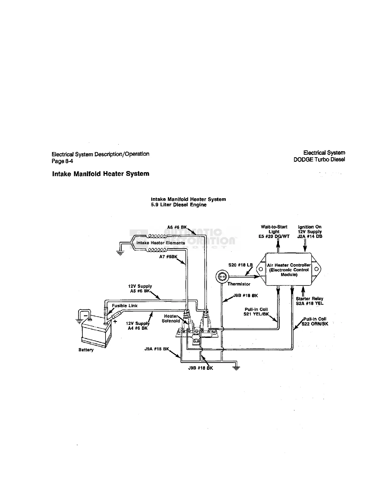 Dodge D350 1990 - Intake Manifold Heater System