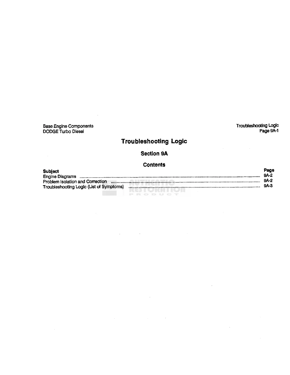 Dodge D350 1990 - Troubleshooting Logic