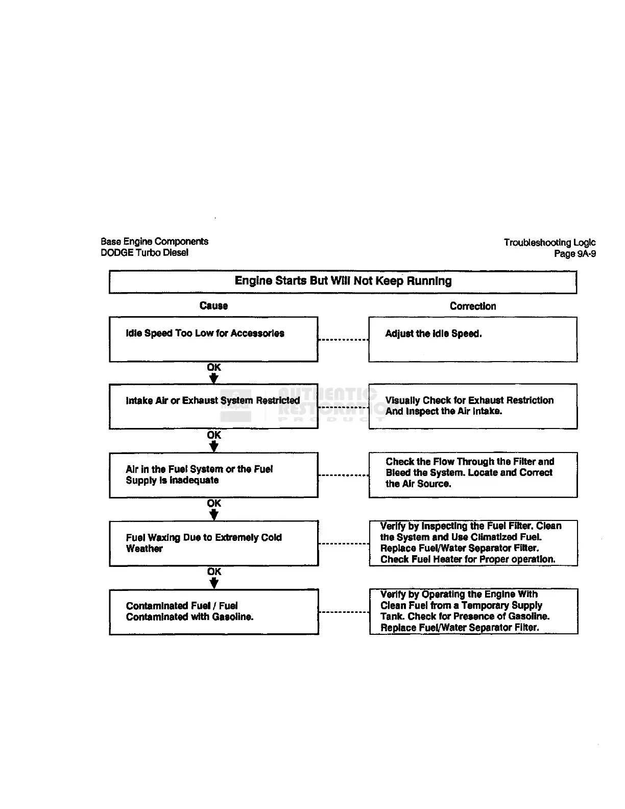 Dodge D350 1990 - Engine Starts but will Not Keep Running