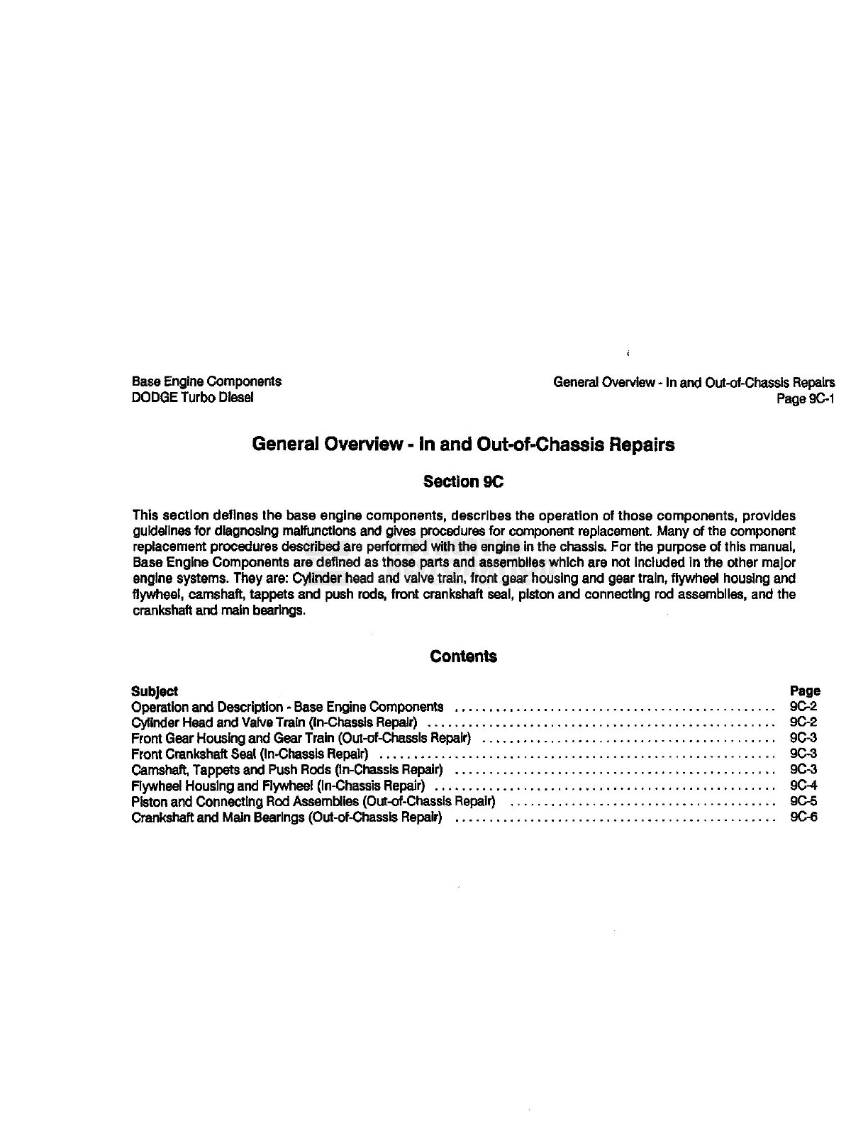 replacement procedures described are performed with the engine in the chassis. For the purpose of this manual,
