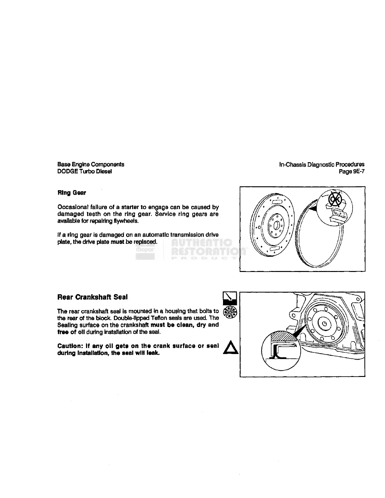Dodge D350 1990 - Rear Crankshaft Seal; Rear Gear