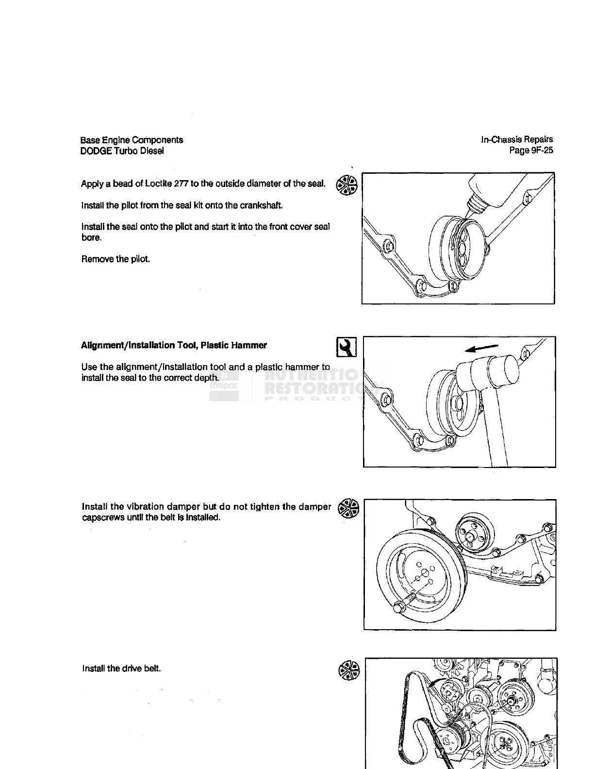 Install the seal onto the pilot and start it Into the front cover
