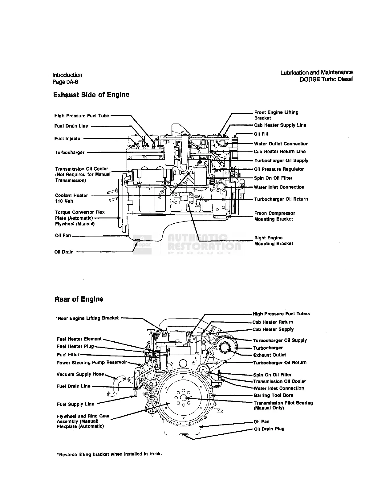 Dodge D350 1990 - Exhaust Side of Engine; Rear of Engine