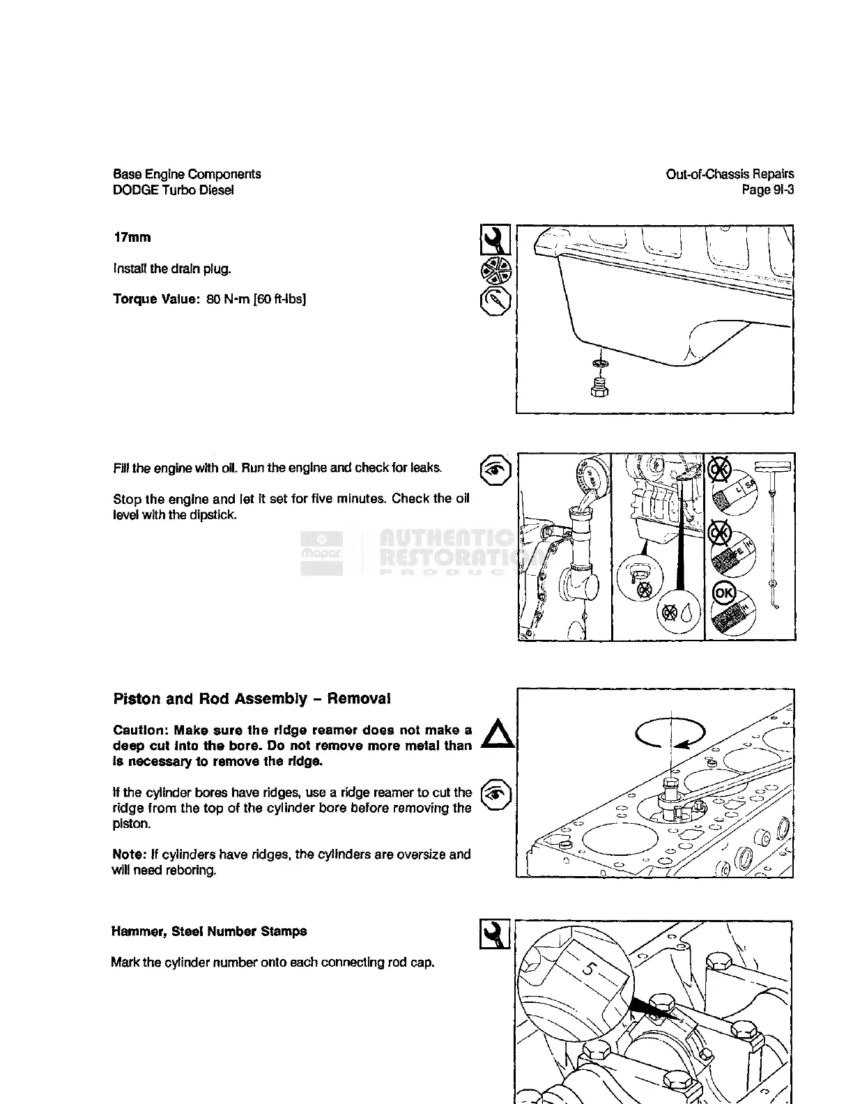If the cylinder bores have ridges, use a ridge reamer to cut the