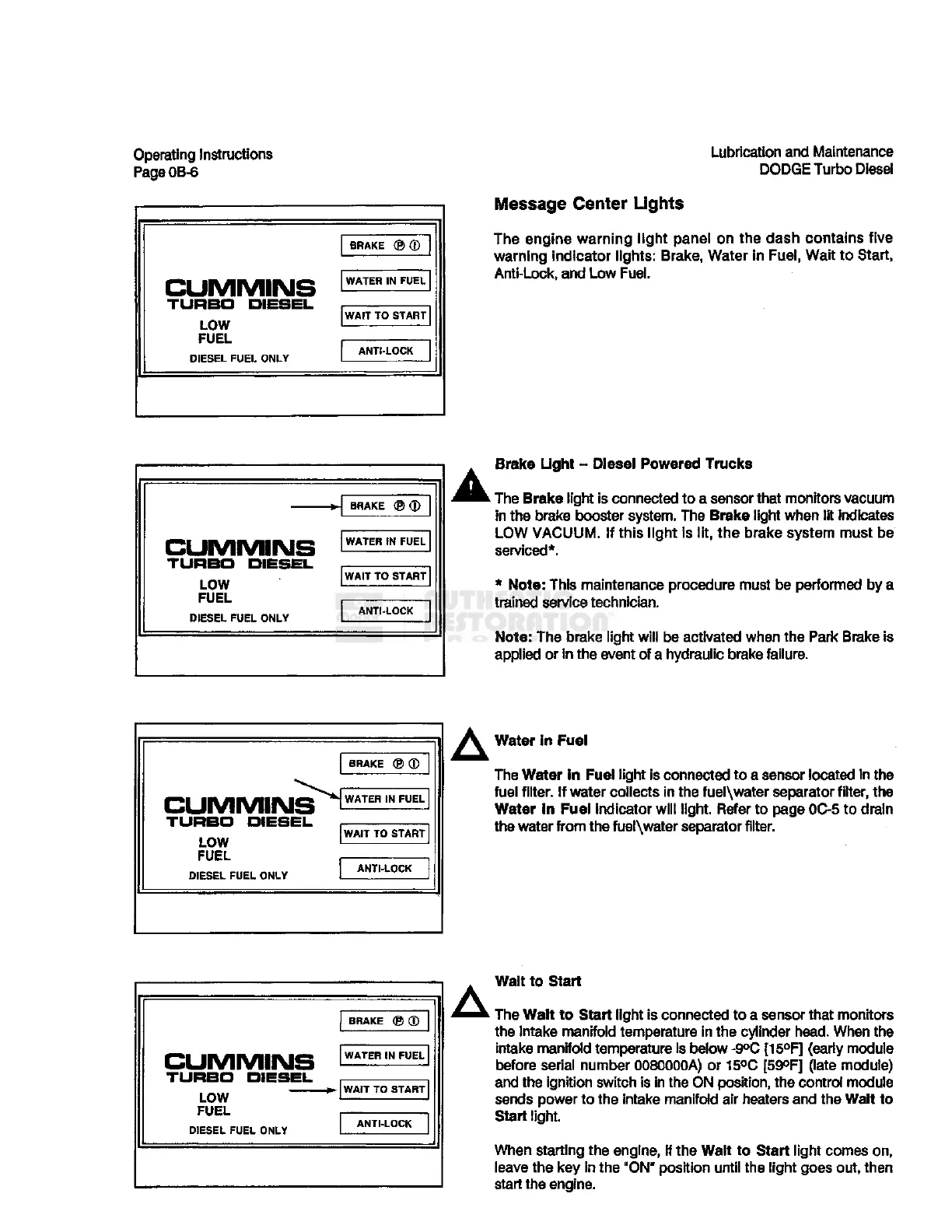 Dodge D350 1990 - Anti-Lock; Brake Light - Diesel Powered Trucks; Message Center Lights; Waittostart