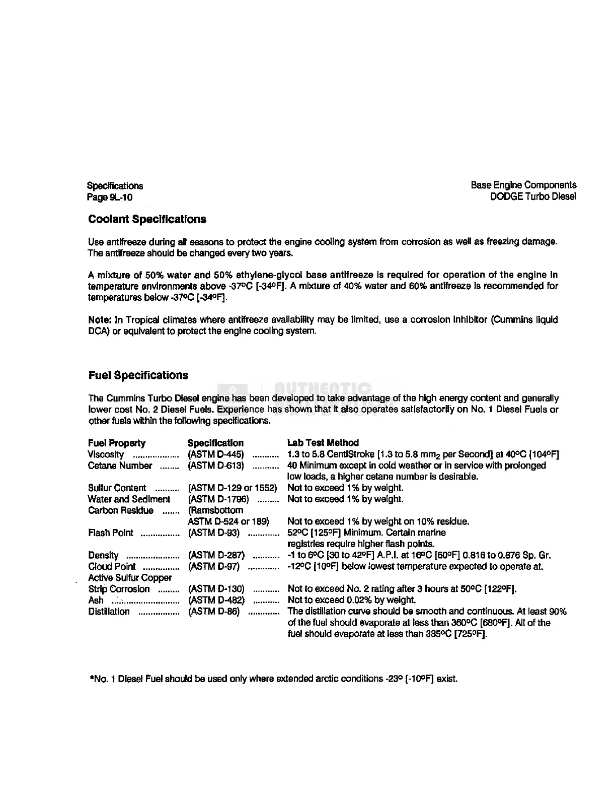 temperature environments above -37°C [-34°F]. A mixture of 40% water and 60% antifreeze is recommended for