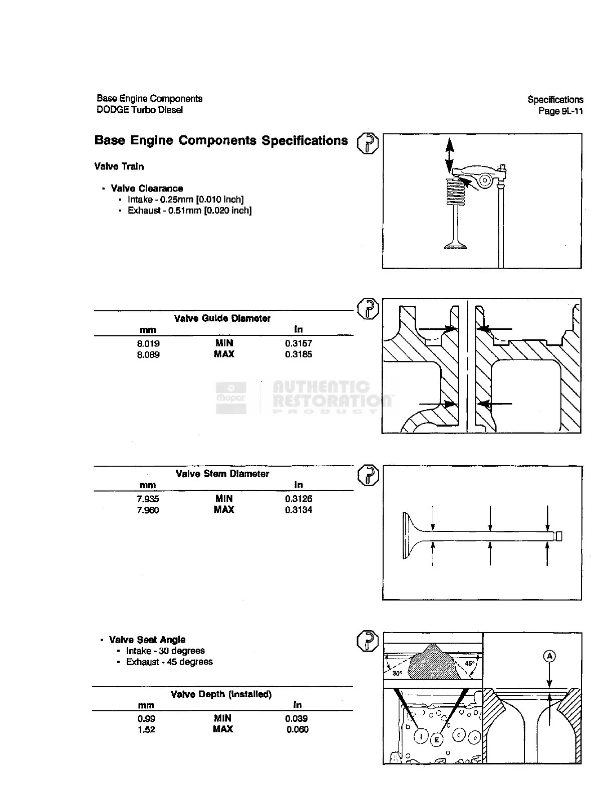 Dodge D350 1990 - Base Engine Components Specifications; Valve Train