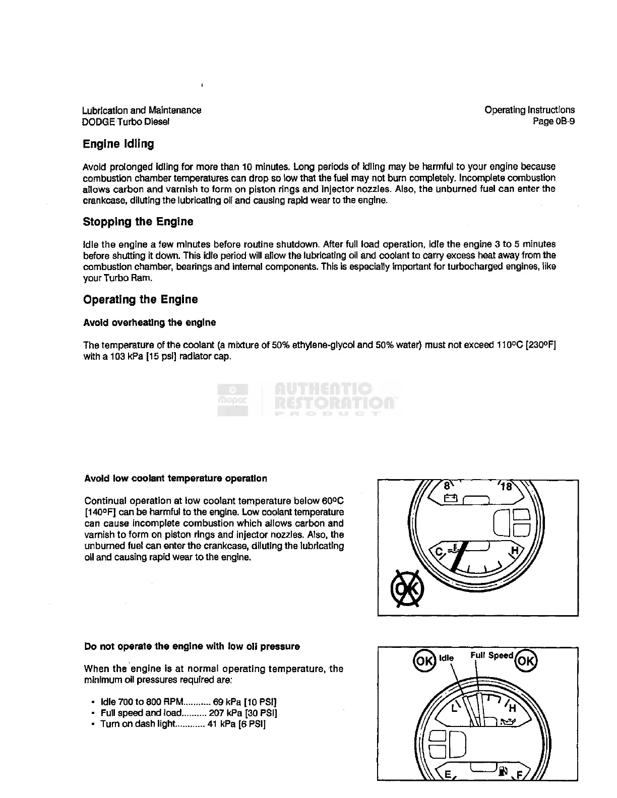Avoid prolonged idling for more than 10 minutes. Long periods of idling may be harmful to your engine