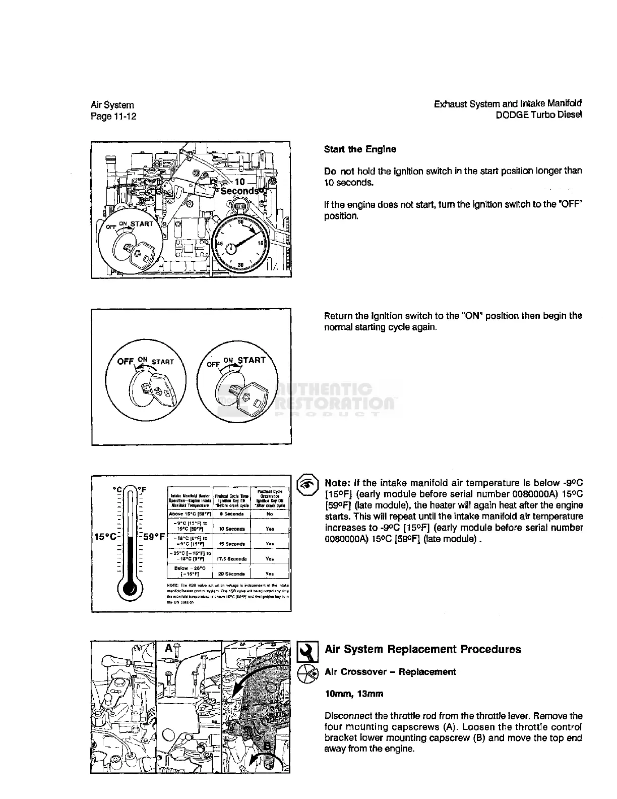 above 15"C [59*F| and the ignition kev