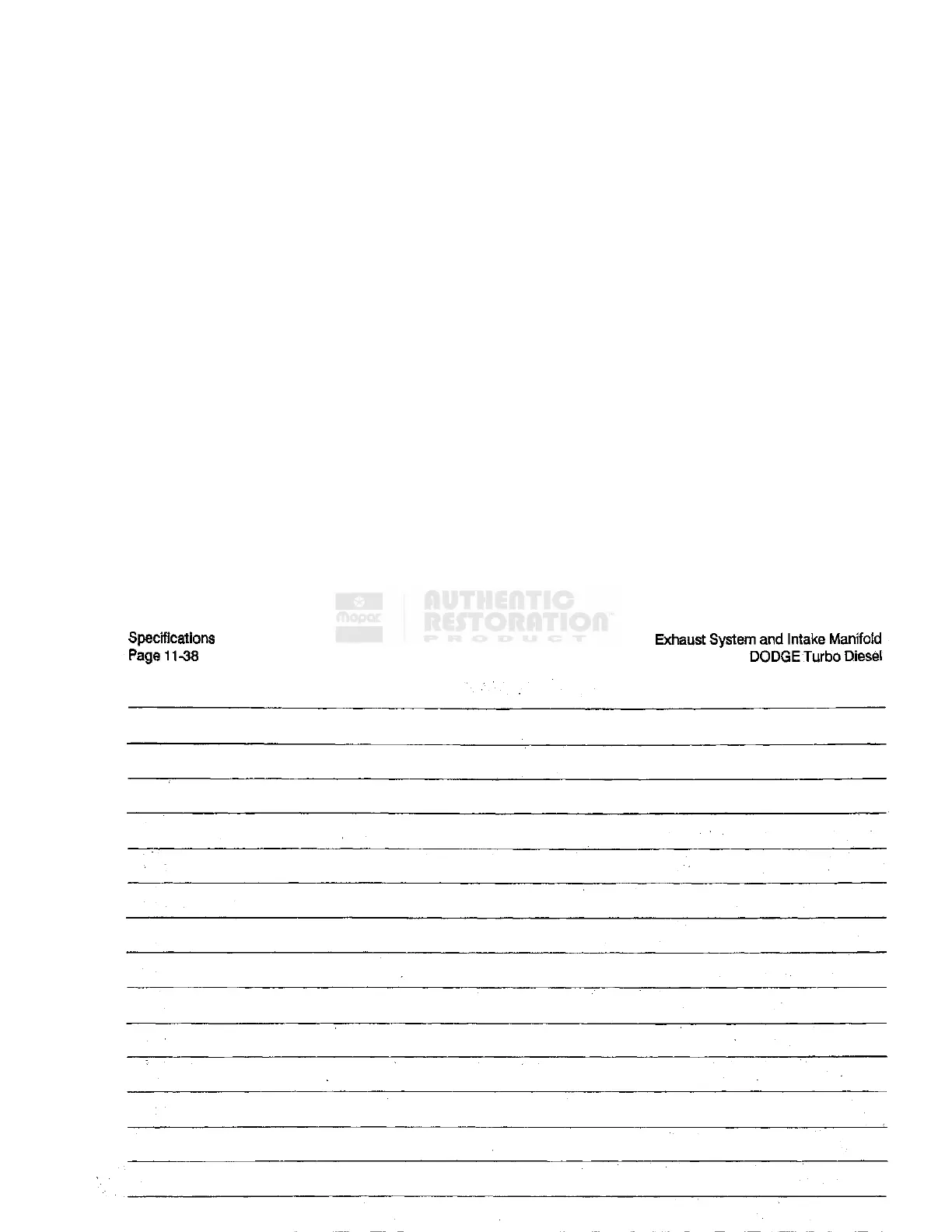 Specifications Exhaust System