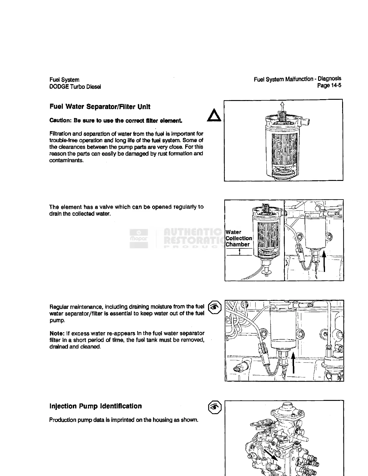 Dodge D350 1990 - Fuel Water Separator;Filter Unit; Injection Pump Identification