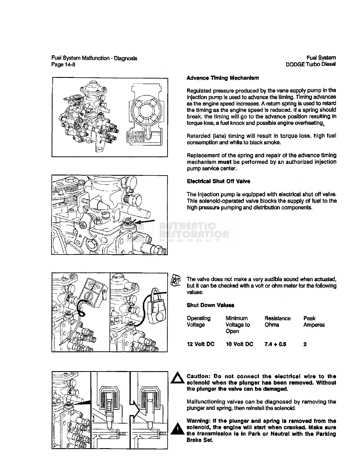 of the spring and repair of the advance timing
