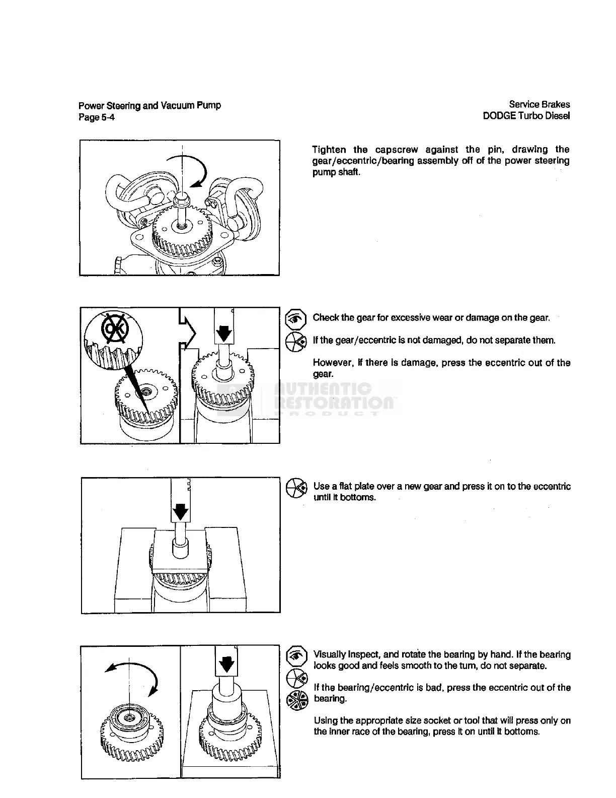 gear/eccentric/bearing assembiy off of the power steering