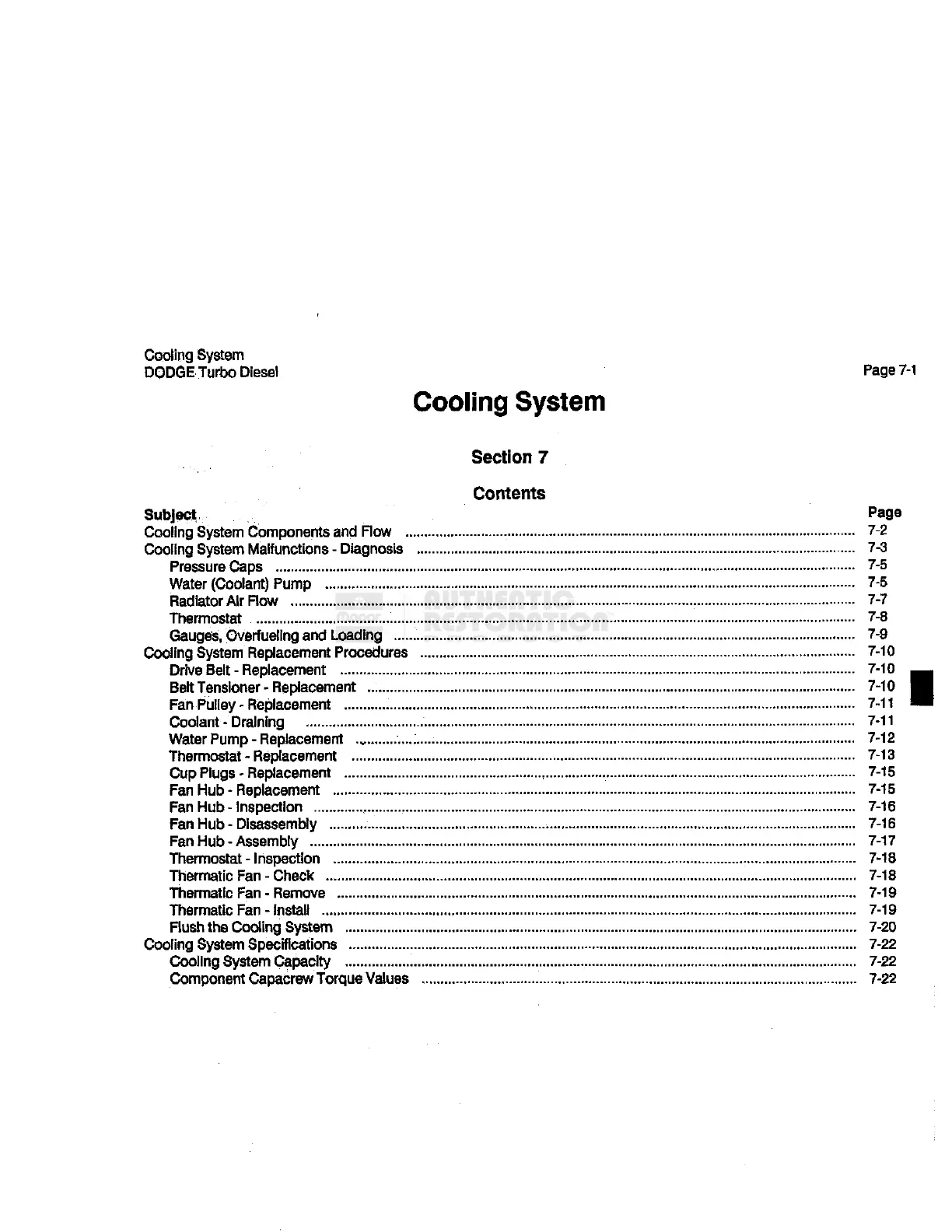 Cooling System Capacity 7-22