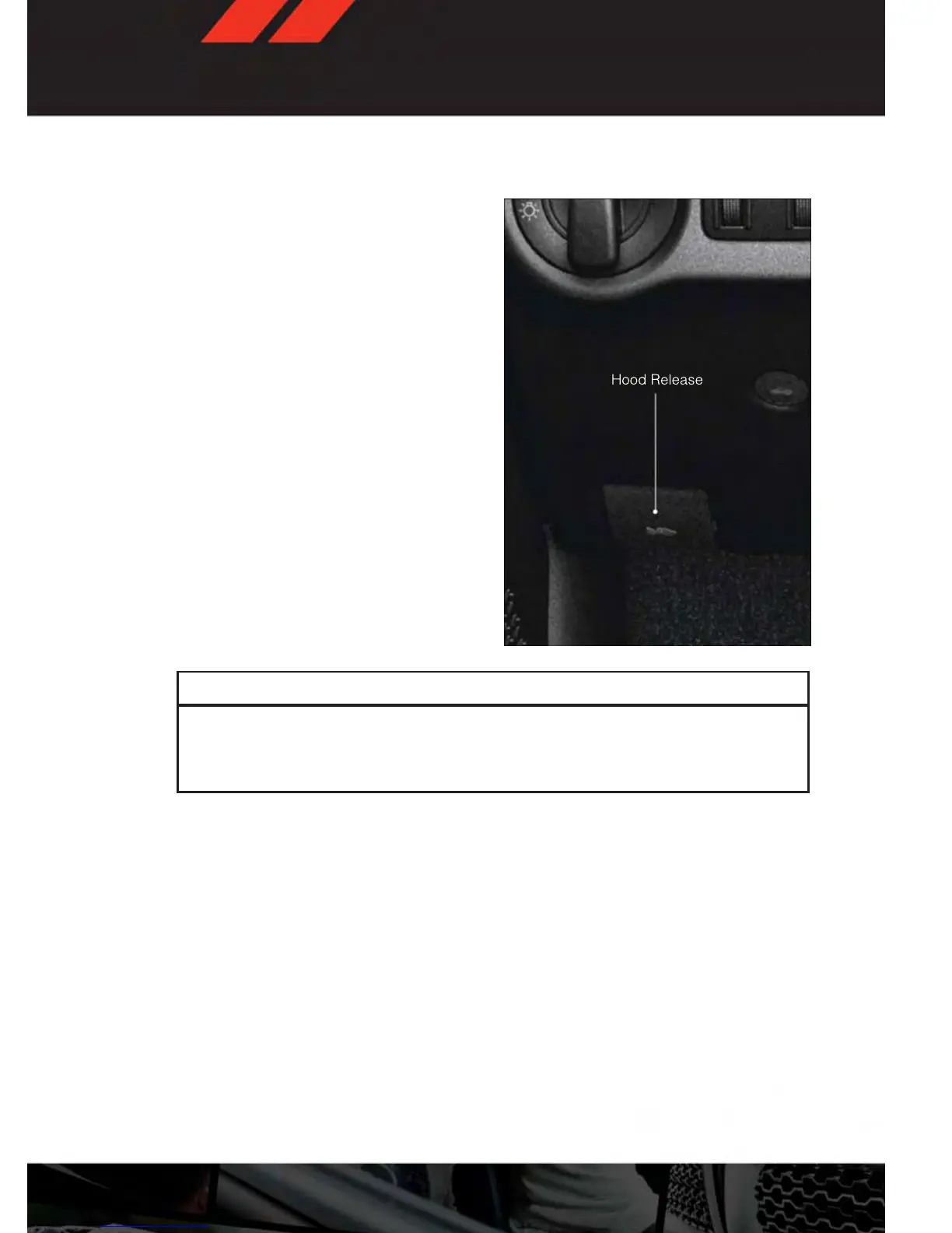 Be sure the hood is fully latched before driving your vehicle. If the hood is not fully