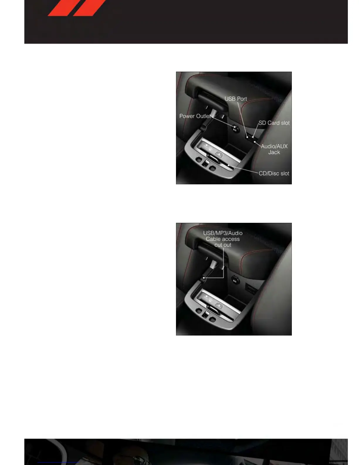 • To route the audio cable out of the center console, use the access cut out on the right side