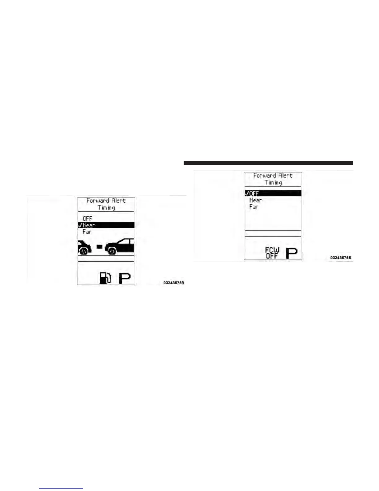 NOTE: In the “Off” setting FCW OFF will be displayed