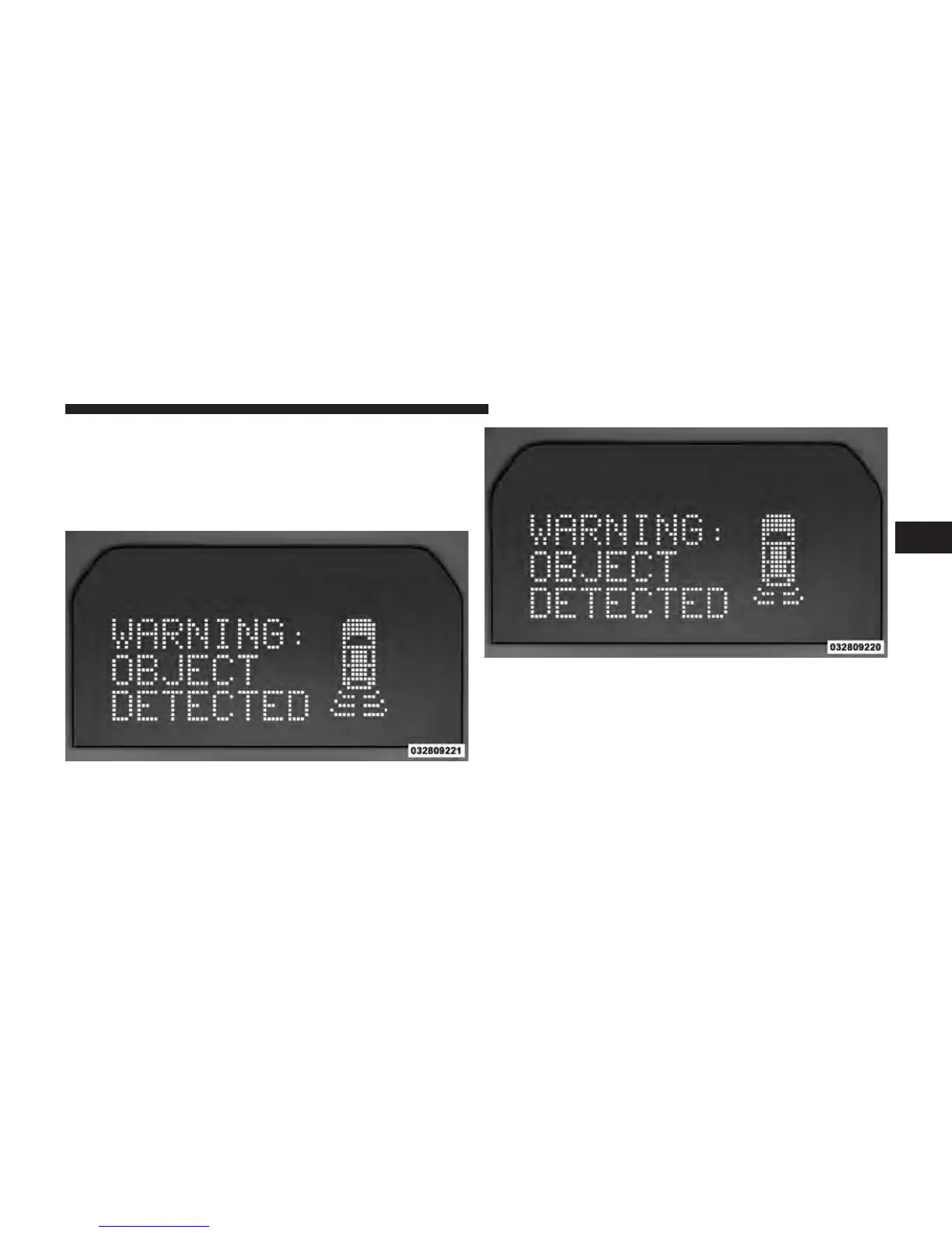 As the vehicle moves closer to the object the EVIC