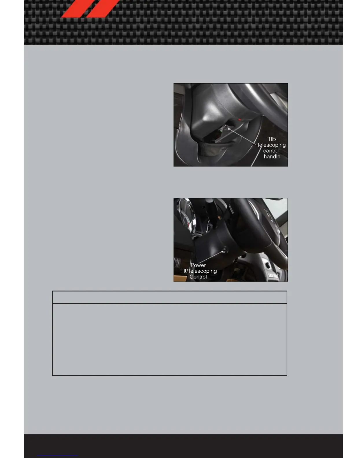 • Do not adjust the steering wheel while driving. The tilt/telescoping