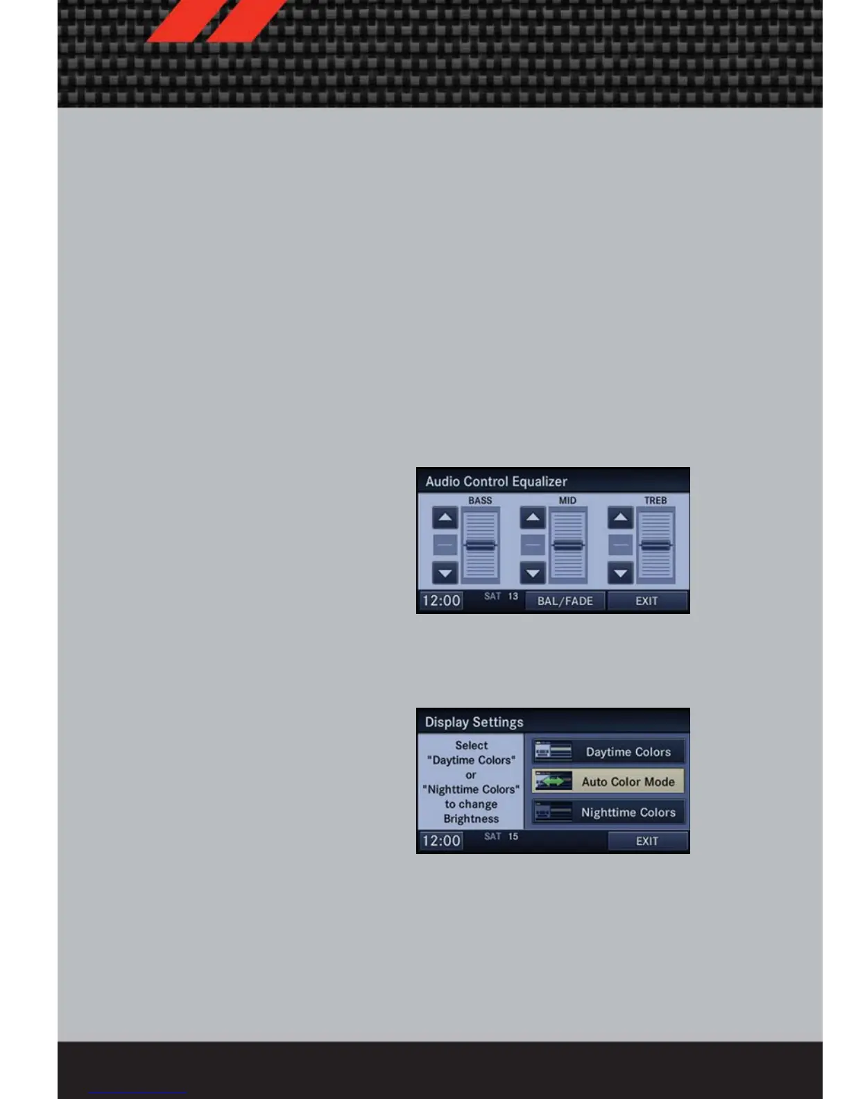 • Select the “Nighttime Colors” soft-key to switch to manual nighttime mode and to