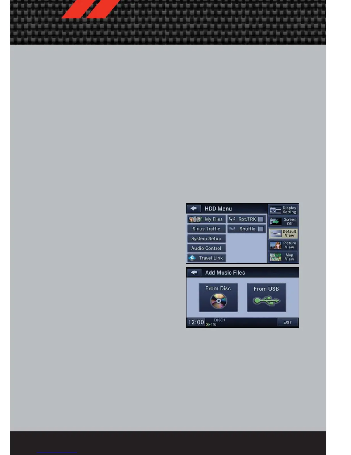 • The Hard Disk Drive (HDD) mode gives you access to the audio files on the internal