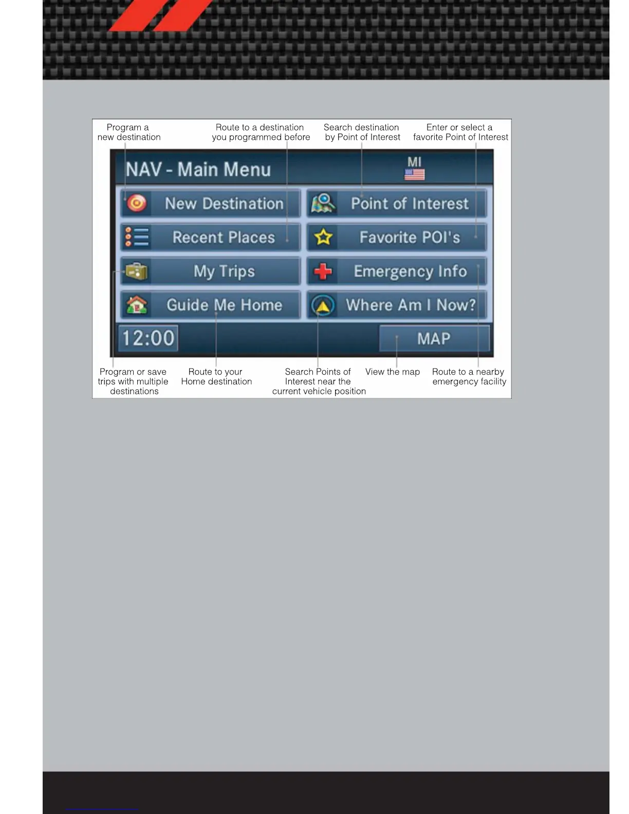 • From the NAV main menu, touch the “Points of Interest” soft-key.
