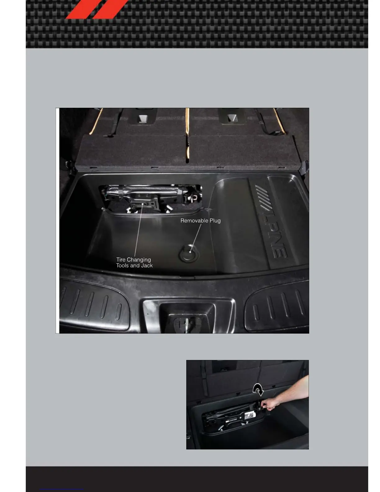 • The scissor-type jack and tire changing tools are located in rear cargo area, below